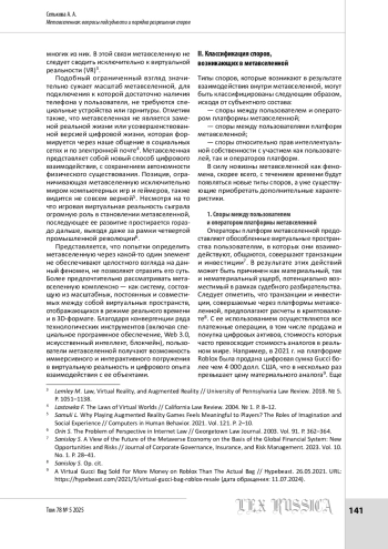 6. Lemley M. Law, Virtual Reality, and Augmented Reality // University of Pennsylvania Law Review. 2018. № 5. P. 1051-1138.