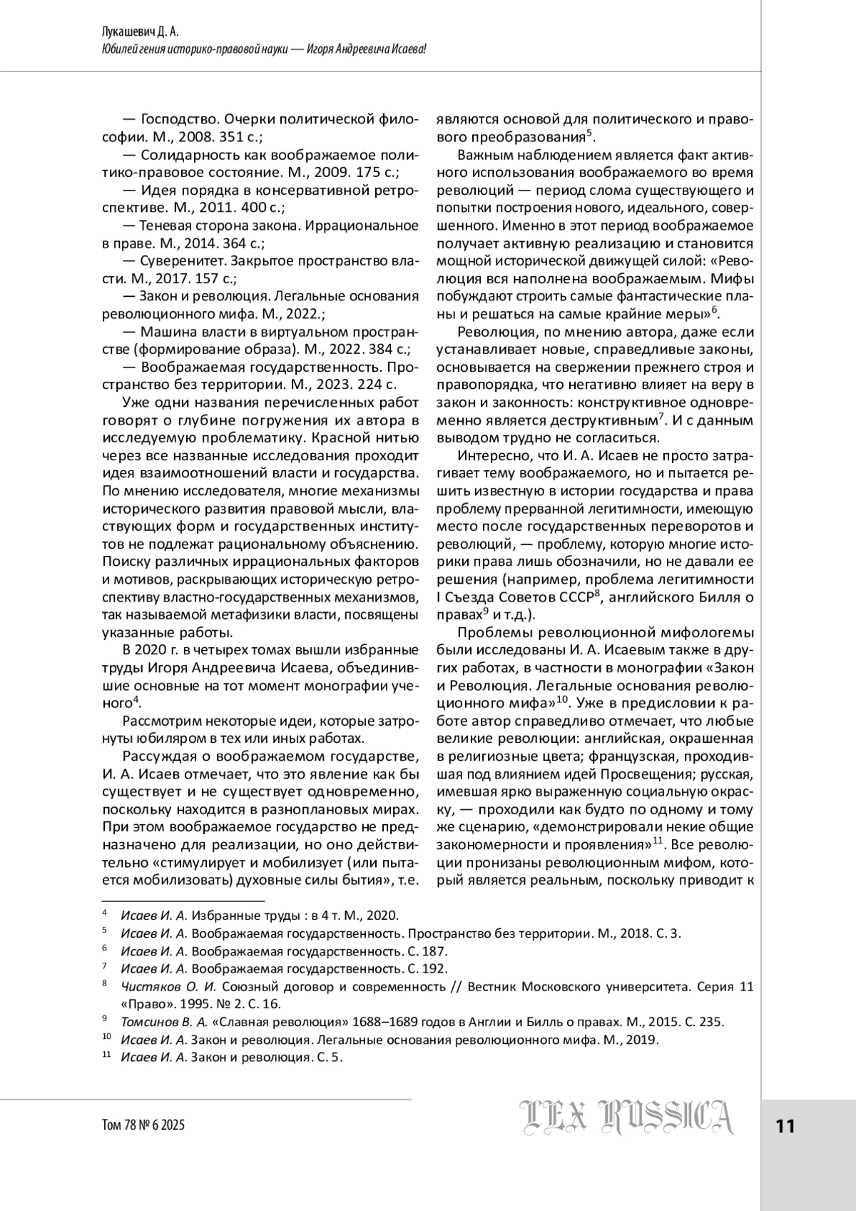 4. Исаев И. А. Закон и Революция. Легальные основания революционного мифа. М., 2019.