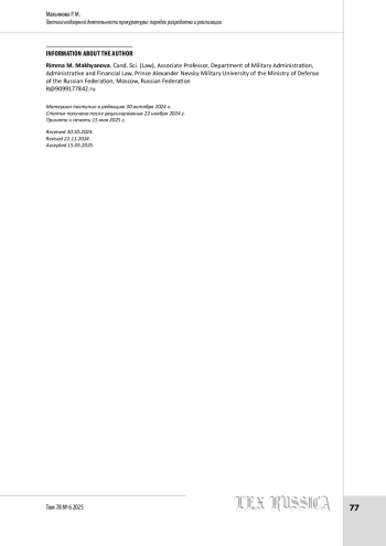 13. Махьянова Р. М. Тактический аспект надзорной деятельности органов прокуратуры : монография. М. : Военный университет имени князя Александра Невского Минобороны России, 2022. 170 с.