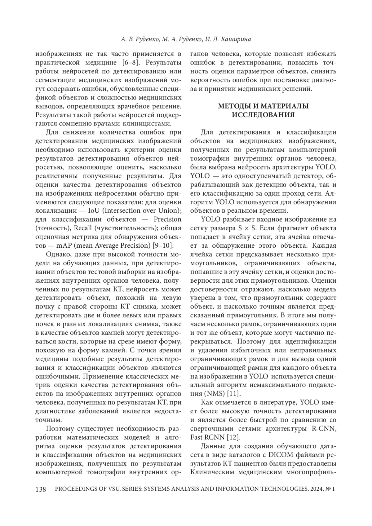 14. Система детектирования и анализа объектов на КТ-снимках в урологии / М. А. Руденко, А. В. Руденко, М. А. Крапивина, В. С. Лисовский // III Международная конференция по нейронным сетям и нейротехнологиям (NEURONT’2022): сборник докладов, Санкт-Петербург, 16 июня 2022 г. -Санкт-Петербург: Санкт-Петербургский государственный электротехнический университет “ЛЭТИ” им. В. И. Ульянова (Ленина), 2022. - С. 38-42. EDN: LXCNGO