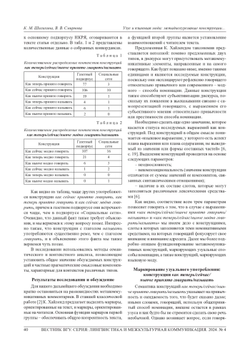 Статья посвящена анализу конструкций «кактеперь/сейчас/нынче принято/модно говорить» и «кактеперь/сейчас/нынче принято/модно называть». Данные конструкции функционируют как мета-коммуникативные комментарии, которые направляют внимание участников дискурса на лексический выбор говорящего. Исходя из семантики конструкций, можно предположить, что для говорящего важно подчеркнуть, что выбранный способ номинации, с его точки зрения, является либо общепринятым, либо модным, т. е. более престижным. Однако анализ данных Национального корпуса русского языка позволяет говорить о наличии дополнительных прагматических смыслов, которые привносят эти конструкции в высказывание: это выбор более престижного способа называния объекта, акцент на образной номинации либо ее клишированности, а также стремление дистанцироваться от общепринятого способа называния объекта. Кроме того, анализ позволяет дополнить таксономию К. Хайленда, включающую метадискурсивные маркеры, направленные на текст, и маркеры, направленные на адресата, третьей группой - маркерами, направленными на самого говорящего. Поскольку эти конструкции отражают обращение говорящего к своим собственным речевым действиям, употребление конструкций «как теперь/ сейчас принято/модно говорить» и «как теперь/сейчас принято/модно называть» связано с субъективизацией дискурса и самопрезентацией говорящего.