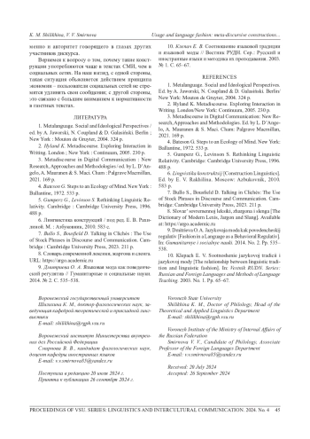 3. Metadiscourse in Digital Communication: New Research, Approaches and Methodologies / еd. by L. D’Angelo, A. Mauranen & S. Maci. Cham: Palgrave Macmillan, 2021. 169 p.