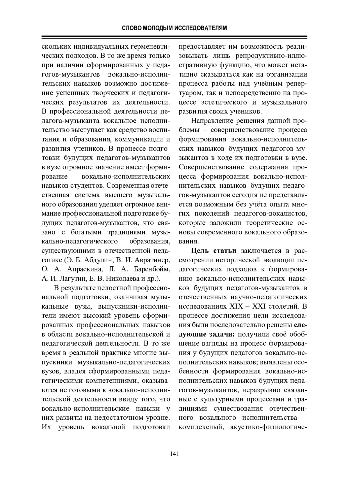 Ключевые фразы: будущие учителя музыки, вокально-исполнительские навыки будущих педагогов-музыкантов, педагогические подходы, будущие педагоги-музыканты, комплексный подход, акустико-физиологический подход, фонопедический подход