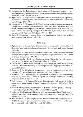 11. Никулина А. С. Формирование коммуникативной компетентности обучающихся в процессе проектирования и реализации индивидуальной образовательной траектории. Саратов, 2020. 203 с.