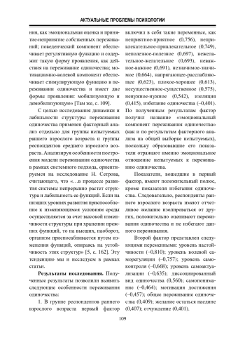 Учитывая содержание факторных нагрузок, данный фактор получил название «поведенческий компонент переживания одиночества». Положительные чувства испытуемых, сопровождающие переживание одиночества, связаны с положительной оценкой одиночества как феномена; низкой потребностью в компании других людей;