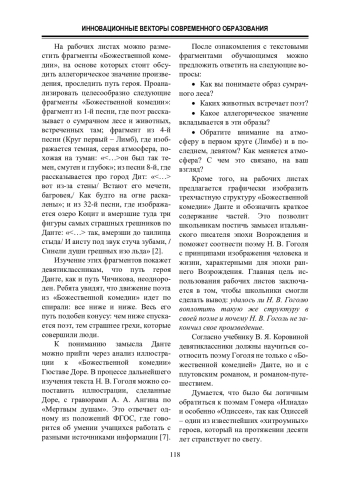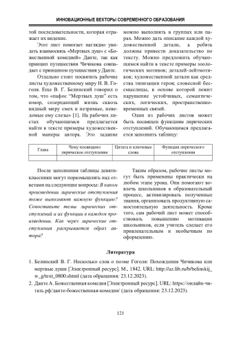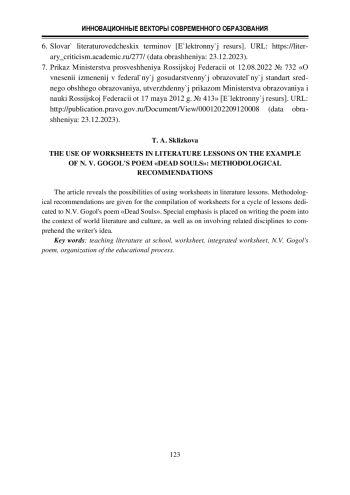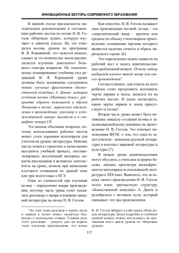 Ключевые фразы: преподавание литературы в школе, рабочий лист, интегрированный рабочий лист, поэма н в гоголя, ОРГАНИЗАЦИЯ УЧЕБНОГО ПРОЦЕССА
