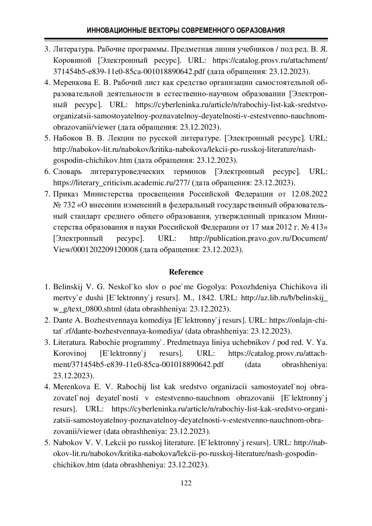 СКЛИЗКОВА Т. А. ИСПОЛЬЗОВАНИЕ РАБОЧИХ ЛИСТОВ НА УРОКАХ ЛИТЕРАТУРЫ НА ПРИМЕРЕ ПОЭМЫ Н. В. ГОГОЛЯ «МЕРТВЫЕ ДУШИ»: МЕТОДИЧЕСКИЕ РЕКОМЕНДАЦИИ // ВЕСТНИК ВЛАДИМИРСКОГО ГОСУДАРСТВЕННОГО УНИВЕРСИТЕТА ИМ. АЛЕКСАНДРА ГРИГОРЬЕВИЧА И НИКОЛАЯ ГРИГОРЬЕВИЧА СТОЛЕТОВЫХ. СЕРИЯ: ПЕДАГОГИЧЕСКИЕ И ПСИХОЛОГИЧЕСКИЕ НАУКИ. 2024. №4