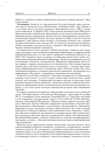 Статья: К ВОПРОСУ О ПРИНЯТИИ ПОПРАВОК К ФЕДЕРАЛЬНОМУ ЗАКОНУ «ОБ ОБРАЗОВАНИИ В РОССИЙСКОЙ ФЕДЕРАЦИИ» (2025)