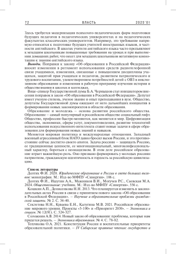 ГУЛЯЕВ А. А. К ВОПРОСУ О ПРИНЯТИИ ПОПРАВОК К ФЕДЕРАЛЬНОМУ ЗАКОНУ «ОБ ОБРАЗОВАНИИ В РОССИЙСКОЙ ФЕДЕРАЦИИ» // ВЛАСТЬ. 2025. ТОМ 33 № 1