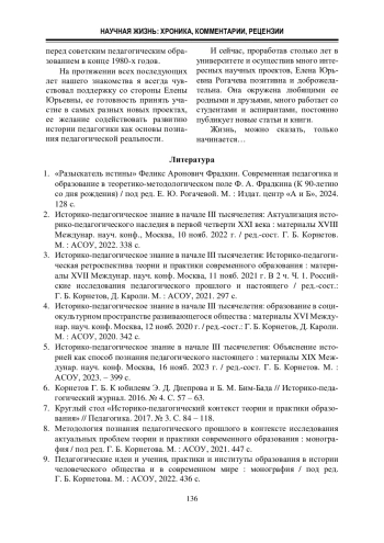 5. Историко-педагогическое знание в начале III тысячелетия: Объяснение историей как способ познания педагогического настоящего : материалы XIX Междунар. науч. конф. Москва, 16 нояб. 2023 г. / ред.-сост. Г. Б. Корнетов. М. : АСОУ, 2023. - 399 с.