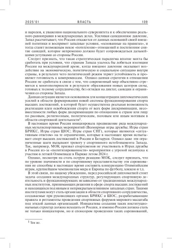 3. Вдовин А.Н., Кузьмин В.Г. 2021. Спорт и политика в международных отношениях. - Ученые записки университета им. П.Ф. Лесгафта. № 12(202). С. 68-72. EDN: HAKIOJ