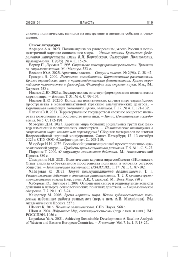 5. Иванов Д.Ю. 2023а. Государство как институт формирования политических картин мира. - Власть. Т. 31. № 6. С. 99-107. EDN: SFMTFW