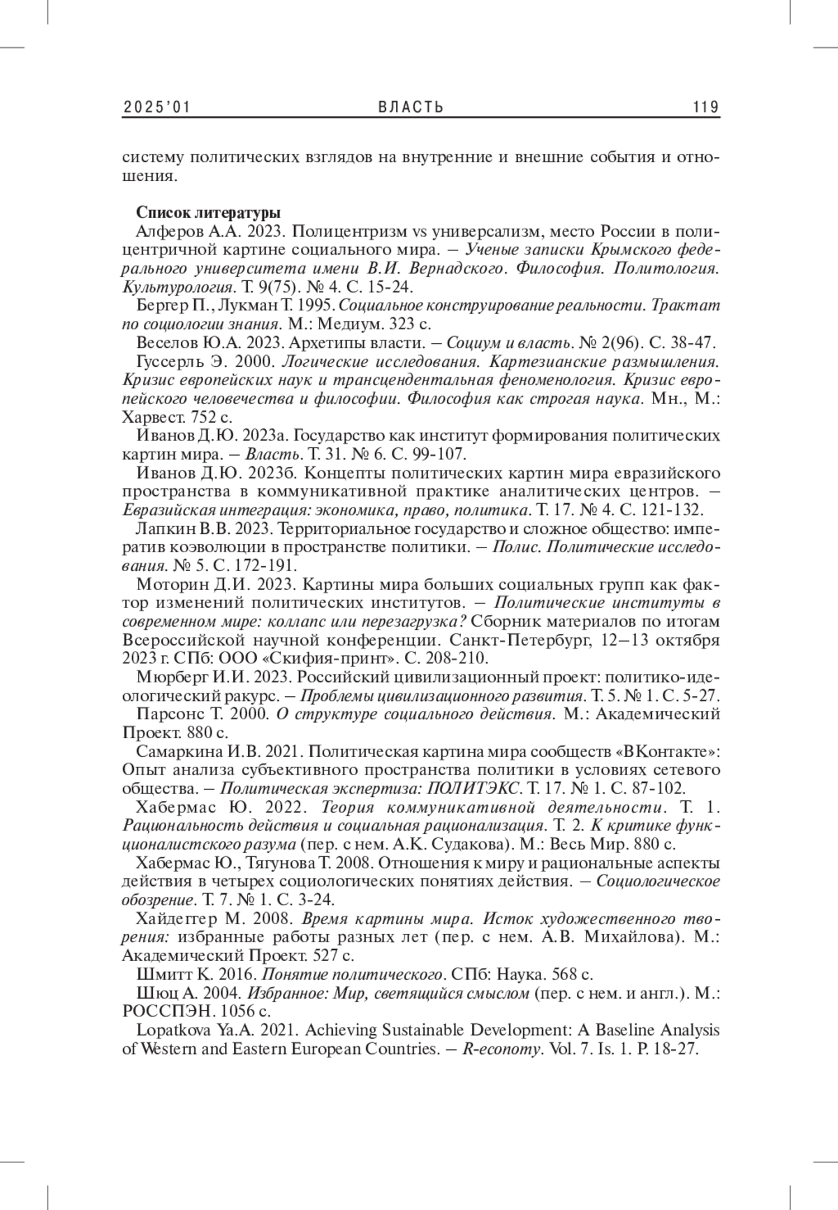 1. Алферов А.А. 2023. Полицентризм vs универсализм, место России в полицентричной картине социального мира. - Ученые записки Крымского федерального университета имени В.И. Вернадского. Философия. Политология. Культурология. Т. 9(75). № 4. С. 15-24. EDN: UVPCQW