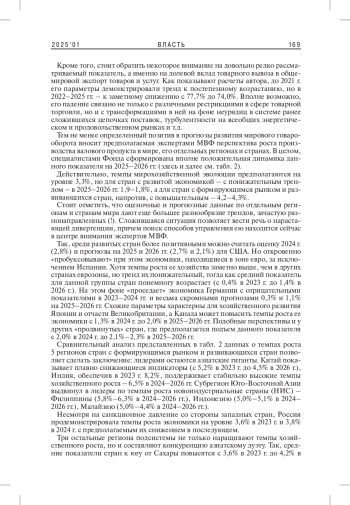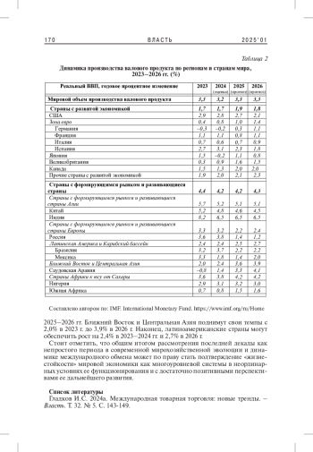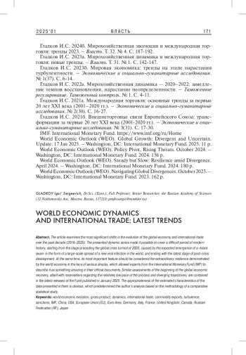 ГЛАДКОВ И. С. МИРОХОЗЯЙСТВЕННАЯ ДИНАМИКА И МЕЖДУНАРОДНАЯ ТОРГОВЛЯ: НОВЕЙШИЕ ТРЕНДЫ // ВЛАСТЬ. 2025. ТОМ 33 № 1