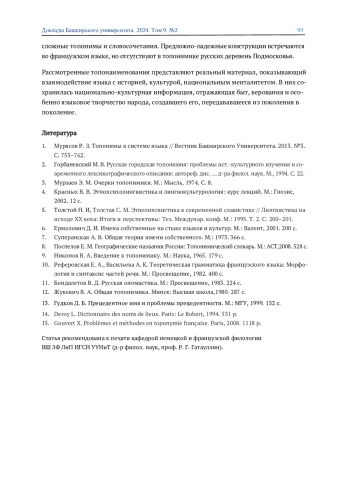1. Мурясов Р. З. Топонимы в системе языка // Вестник Башкирского Университета. 2013. №3. С. 753-762. EDN: REVAZH