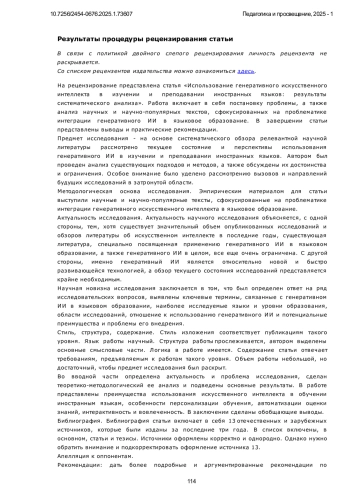 1. Есина Л. С. Внедрение чат-ботов в преподавание и изучение иностранных языков // Мир науки, культуры, образования. 2024. № 2 (105). С. 201-204.