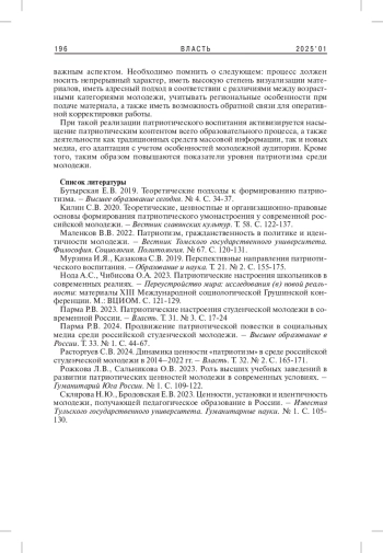 7. Парма Р.В. 2024. Продвижение патриотической повестки в социальных медиа среди российской студенческой молодежи. - Высшее образование в России. Т. 33. № 1. С. 44-67. EDN: LLCBSO