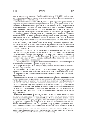 В статье показаны особенности организации коммуникации органов местного самоуправления и населения в условиях ускоренной цифровизации, основные рамки которой были заложены в федеральном законе «Об обеспечении доступа к информации о деятельности государственных органов и органов местного самоуправления». Авторы рассматривают эффективную коммуникацию как один из факторов легитимации местного самоуправления, показателем которого выступает доверие. Контент-анализ сайтов и страниц местных администраций в социальных сетях позволил сделать вывод, что форсированное создание интернет-ресурсов пока не привело к повсеместному качественному обмену информацией между властью и обществом. Исследование выявило несущественные региональные различия в плане функционирования официальных сайтов и страниц в социальных сетях муниципальных органов власти. Опираясь на эмпирические данные всероссийского мониторинга о динамике уровня доверия к местной власти, авторы делают вывод, что доверие к местной власти коррелирует с оценками уровня развития МСУ в стране. При этом коммуникация между властью и населением как механизм легитимации МСУ оценивается как низкоэффективная.