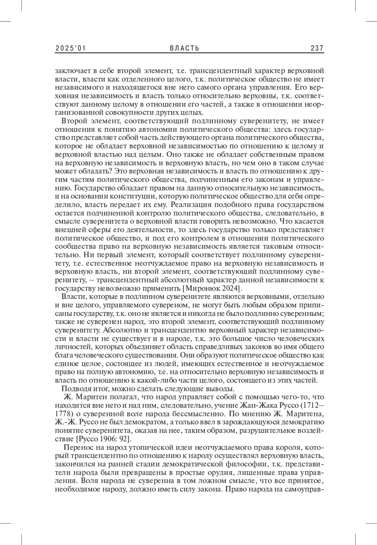 6. Маритен Ж. 2000. Человек и государство (пер. с англ. Т. Лифинцевой). М.: Идея-Пресс. 196 с.