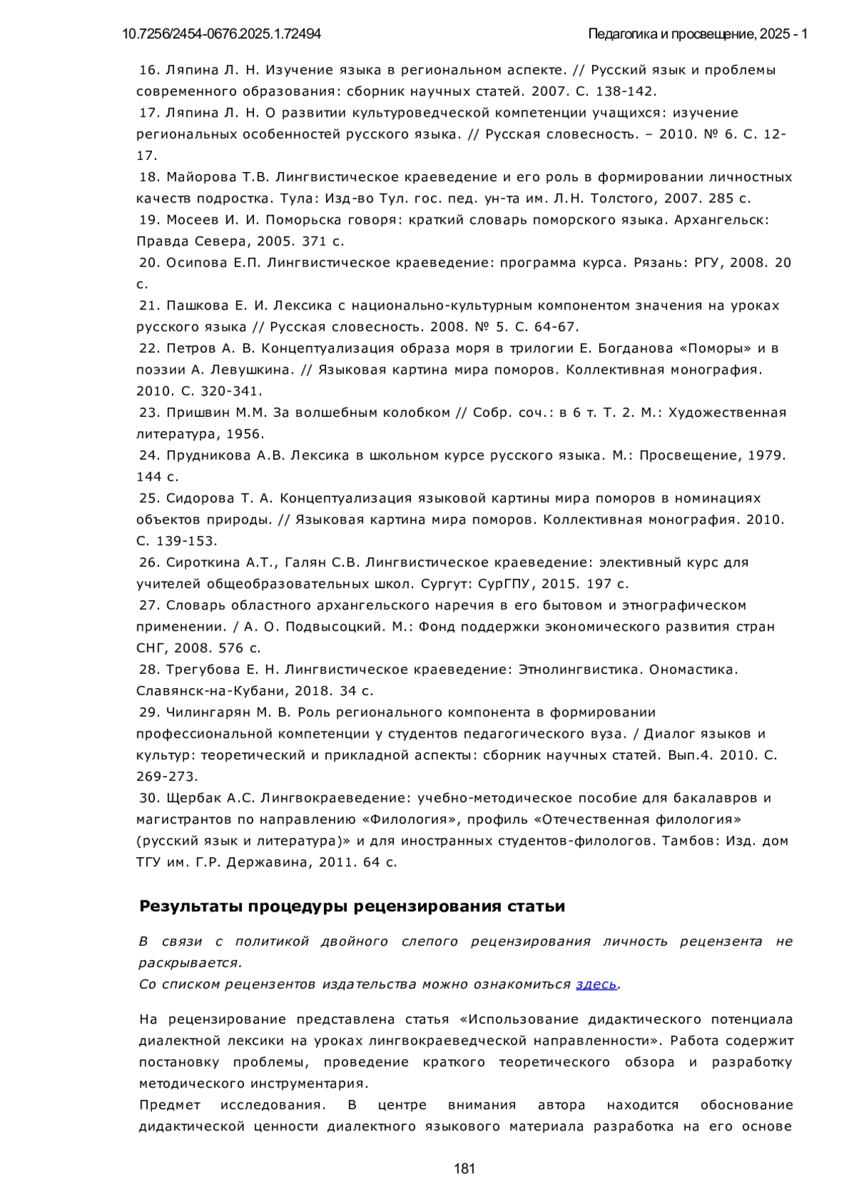 16. Ляпина Л. Н. Изучение языка в региональном аспекте. // Русский язык и проблемы современного образования: сборник научных статей. 2007. С. 138-142.