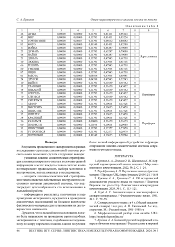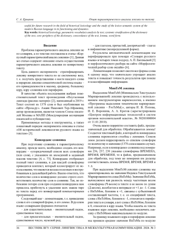 1. Кретов А. А., Донина О. В., Шилихина К. М. Корпусный параметрический анализ лексики // Мир лингвистики и коммуникации. 2022. № 2. С. 1-24. EDN: VFUCYJ