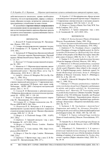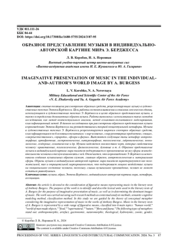 18. Коробко Л. В. Метафорические образы музыки в индивидуально-авторской картине мира Э. Берджесса // Современные лингвистические и методико-дидактические исследования. 2019. № 2 (42). С. 61-69.