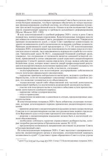 3. Хаммад А., Кантауи А. 2024. Высший совет магистратуры Алжира: между субординацией и независимостью (сравнительное исследование конституционных поправок 2016 и 2020 гг.). - Алжирский журнал права и гуманитарных наук. № 17(1). С. 229-249. [عبد الله حماد، عبد الله كنتاوي. المجلس الأعلى للقضاء الجزائري بين التبعية والاستقلالية (دراسة مقارنة بين التعديلين الدستوريين 2016-2020) // مجلة الحقوق والعلوم الإنسانية. المجلد 17، العدد 1، 2024. ص. 229-249.].