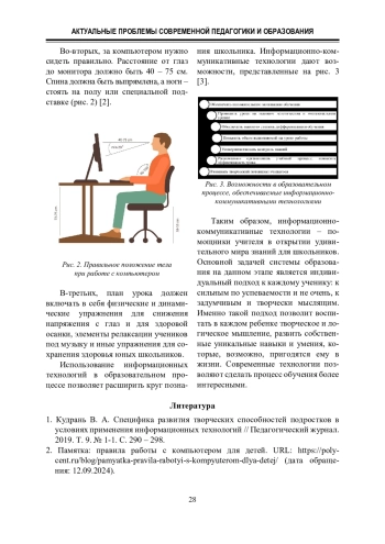 3. Сердюк Н. И. Информационно-коммуникативные технологии в образовательном процессе как средство развития творческих способностей младших школьников. URL: https://infourok.ru/statya-informacionno-kommunikativnyetehnologii-v-obrazovatelnom-processe-kak-sredstvo-razvitiya-tvorcheskih-sposobnostej-mladsh-4661689.html (дата обращения: 12.09.2024).