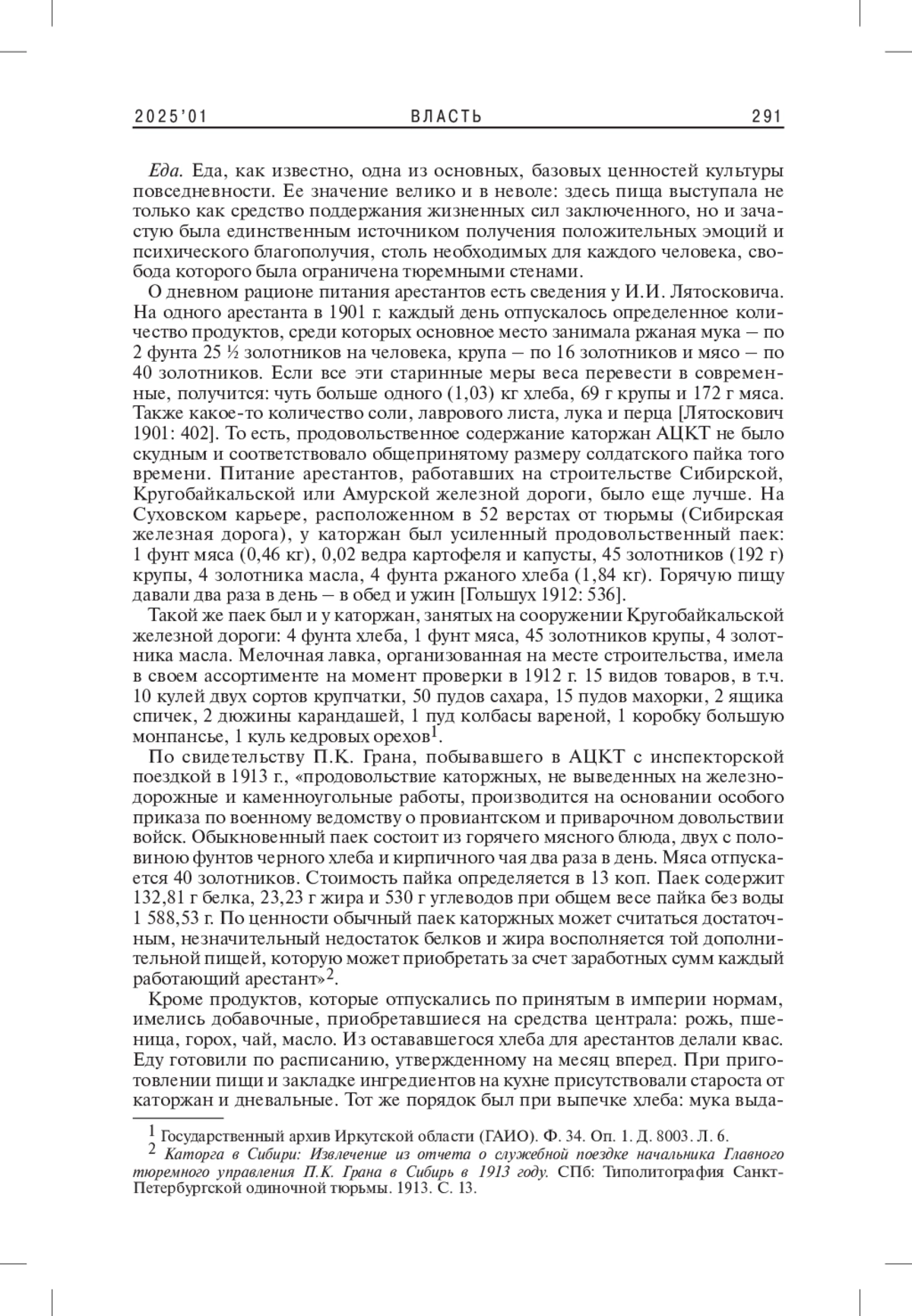 6. Гольшух Г. 1912. Арестантские работы в Иркутской губернии в 1911 году. - Тюремный вестник. № 3. С. 529-565.