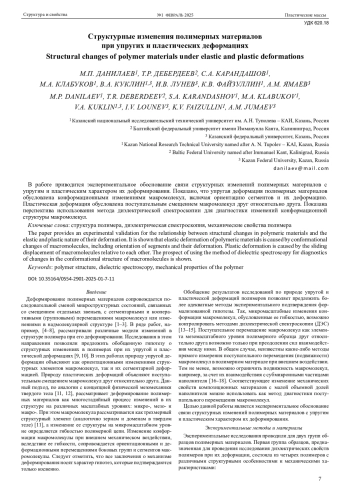 4. Тюнькин И.В., Баженов С.Л., Ефимов А.В. и др. Влияние ориентации на механизм деформирования полимеров // Высокомолекулярные соединения. Серия А. 2011. Т. 53, №8. С. 1402-1414.