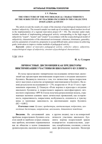 12. Молчанова Л. Н., Фомина А. В., Прокофьева А. А. Особенности взаимосвязей личностных качеств и риска буллинга среди обучающихся средней и высшей школы // Известия Юго-Западного государственного университета. Серия: Лингвистика и педагогика. 2020. Т. 10. № 3. С. 209 - 225.