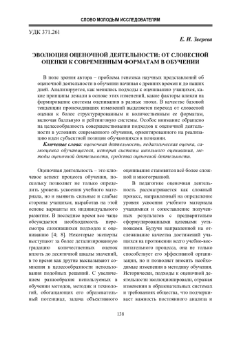 12. Разливинских И. Н., Стерхова Н. С., Оленькова Н. В., Осипова Я. У. Исторический анализ проблемы контроля и оценивания результатов учебной деятельности младших школьников // Вестник Шадринского государственного педагогического университета. 2023. № 4 (60). С. 25 - 35.