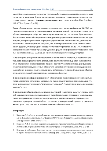 1. Борисова С. А. “Азъ же того оубоявъсѧ”: эмотивная лексика страха как характеристика князей в “Повести временных лет” // Вестник РГГУ. Серия “Литературоведение. Языкознание. Культурология”. 2022. №2. С. 61-75. EDN: YMPHEX