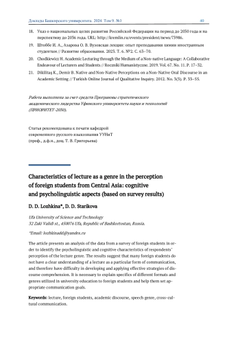 3. Баранова И. И., Виноградова М. В., Гладких И. А., Доценко М. Ю. Проблемы обучения русскому языку как иностранному в специальных целях: анализ мнений студентов // Перспективы науки и образования. 2021. №5(53). С. 260-276. EDN: JYYQOB