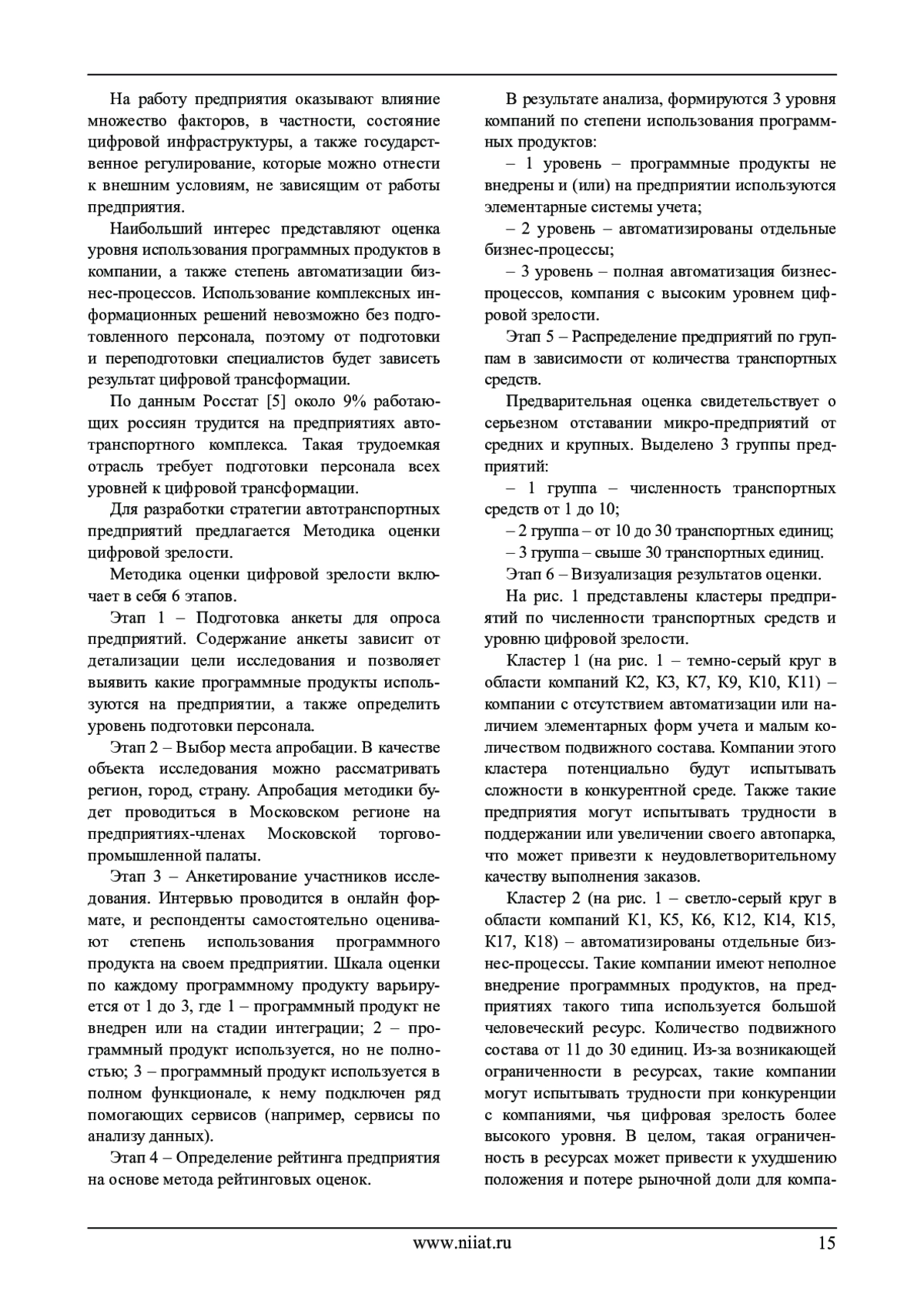Ключевые фразы: цифровая зрелость предприятия, индекс цифровизации, цифровая транс- формация автотранспортных предприятий
