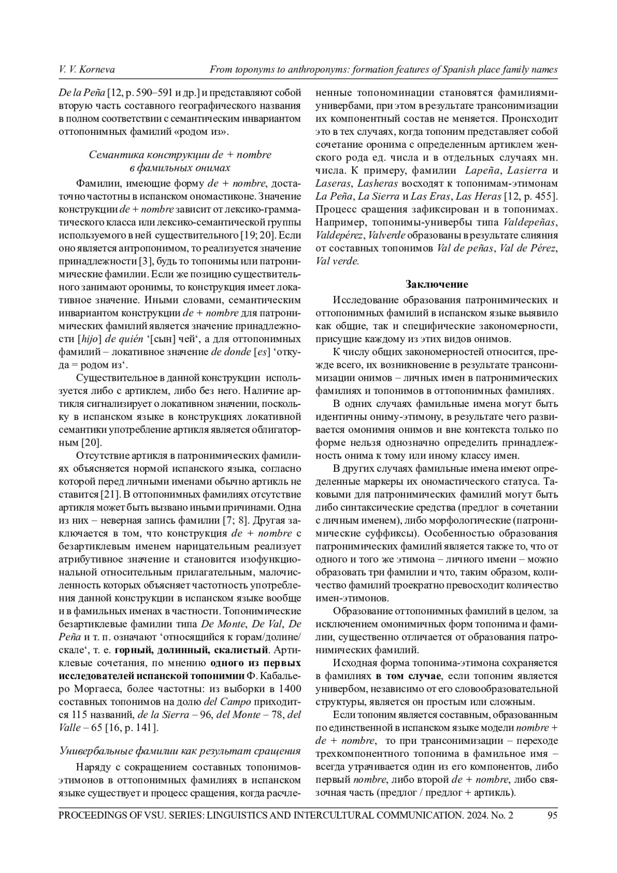 3. Корнева В. В., Тужикова Д. Б. Оротопонимы в испанской языковой картине мира: монография. Воронеж: НАУКА-ЮНИПРЕСС, 2023. 228 с. EDN: HJTQTD