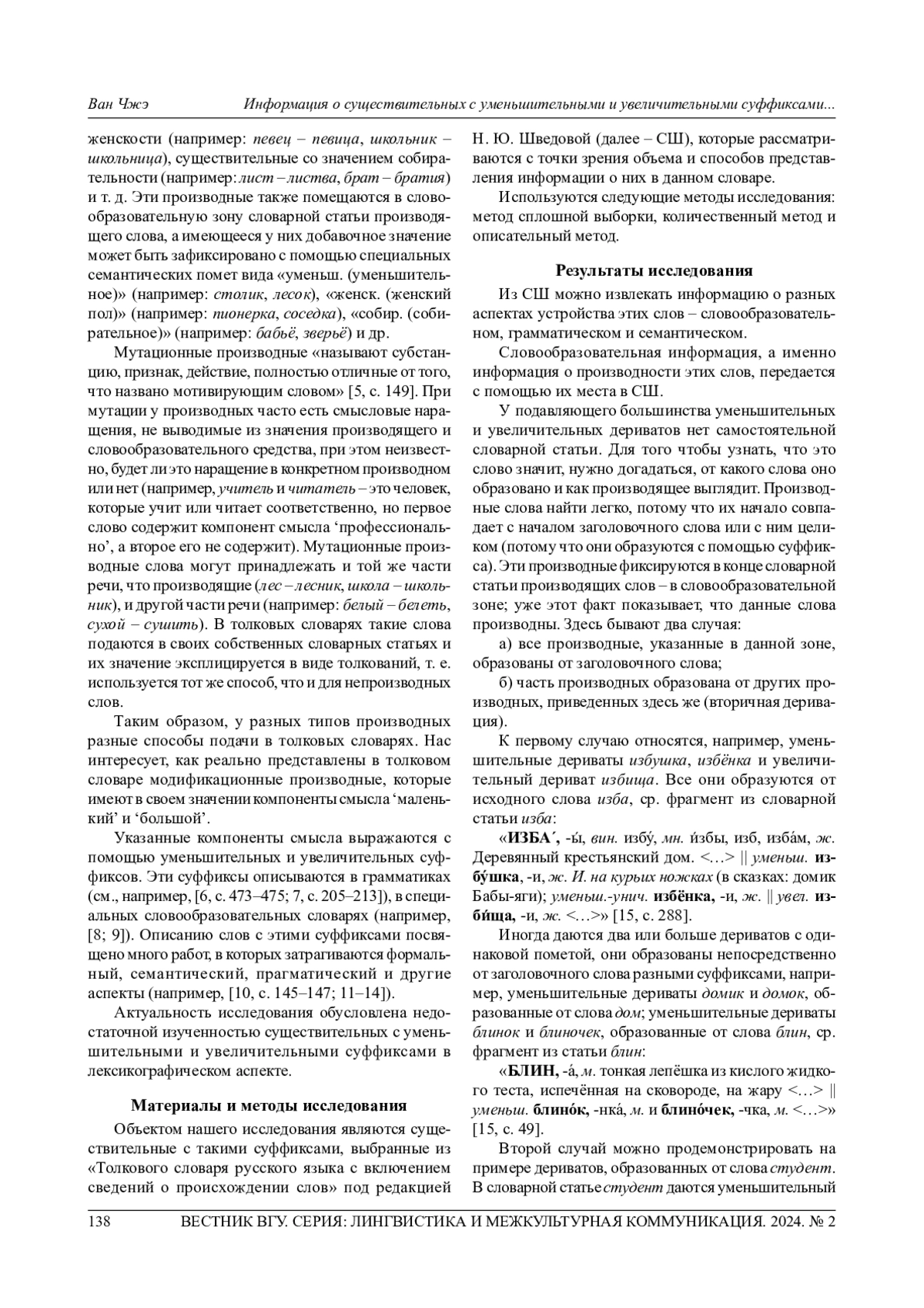 14. Воейкова М. Д. Структурные функции диминутивов в современном русском языке и продуктивность их употребления // Вопросы языкознания. 2020. № 5. С. 38-56. EDN: JTUPKA