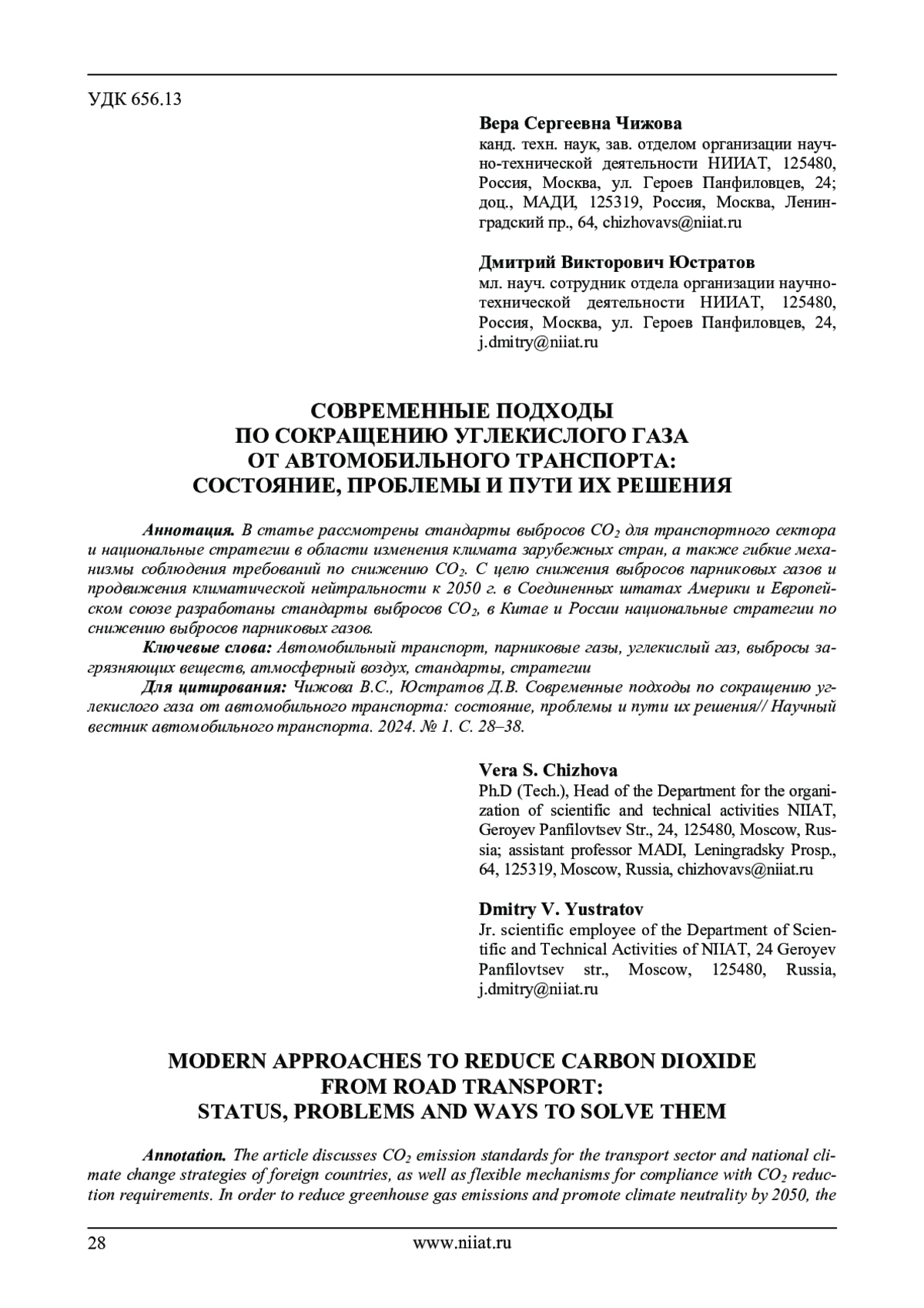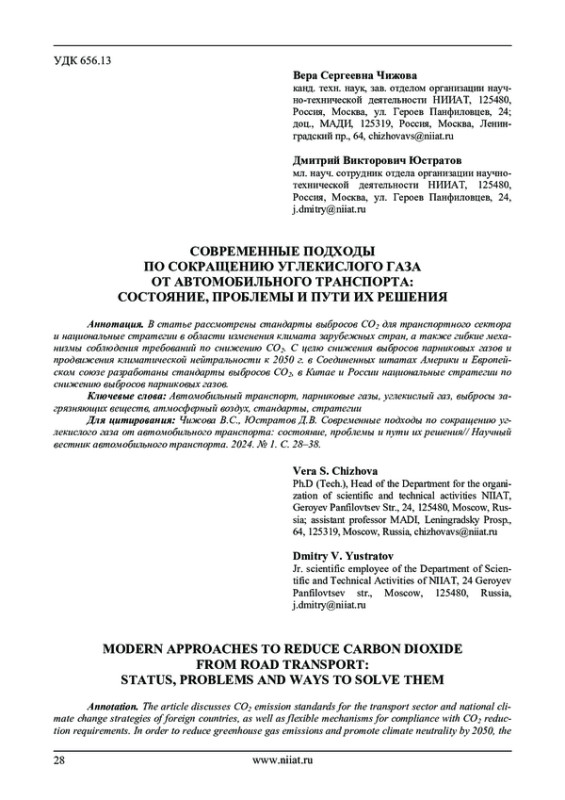 В статье рассмотрены стандарты выбросов СО2 для транспортного сектора и национальные стратегии в области изменения климата зарубежных стран, а также гибкие механизмы соблюдения требований по снижению СО2. С целю снижения выбросов парниковых газов и продвижения климатической нейтральности к 2050 г. в Соединенных штатах Америки и Европейском союзе разработаны стандарты выбросов СО2, в Китае и России национальные стратегии по снижению выбросов парниковых газов.