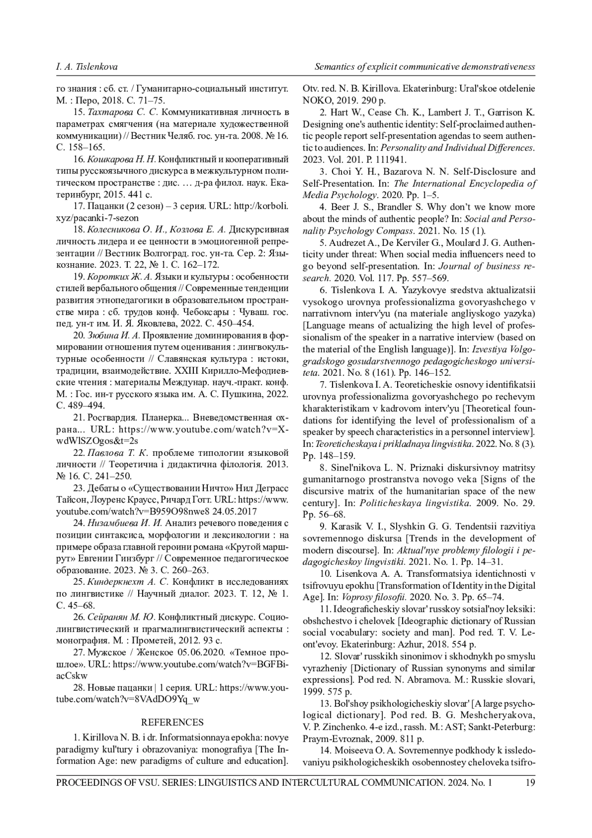 18. Колесникова О. И., Козлова Е. А. Дискурсивная личность лидера и ее ценности в эмоциогенной репрезентации // Вестник Волгоград. гос. ун-та. Сер. 2: Языкознание. 2023. Т. 22, № 1. С. 162-172. EDN: LFQHVN