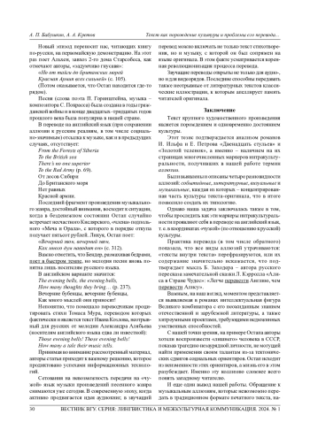 Статья посвящена анализу художественного текста как культурного явления, а также восприятию этого текста в координатах «чужой» культуры. Авторы обращаются к переводам на английский язык текстовых аллюзий в романах И. Ильфа и Е. Петрова «Двенадцать стульев» и «Золотой теленок», понимая под словом «аллюзия» мысленную отсылку читателя к культурным событиям реальной жизни, произведениям литературы и искусства, включая в рамки последнего и музыку. В результате объектом разбора становятся аллюзии четырех типов: событийные, литературные, художественноизобразительные и музыкальные. Перевод аллюзий на английский язык (и часто практикуемый обратный перевод) свидетельствует о том, что все эти отсылки в основном утрачивают свой культурный потенциал, подвергаясь перефразировке или искажению. Особое внимание в работе уделяется музыкальным аллюзиям. Если текст песни можно перевести с одного языка на другой, то в традиционном бумажном формате его музыкальное сопровождение оказывается непереводимым. Авторы предлагают революционизировать формат перевода. Благодаря информационным технологиям сегодня активизируются электронные и аудиокниги, в которых вполне реально использовать не только музыкальные аллюзии, но и визуальные. Интерес представляет обращение к языковой личности главного героя повествования, так как ранее фигура Остапа Бендера с этих позиций не изучалась.