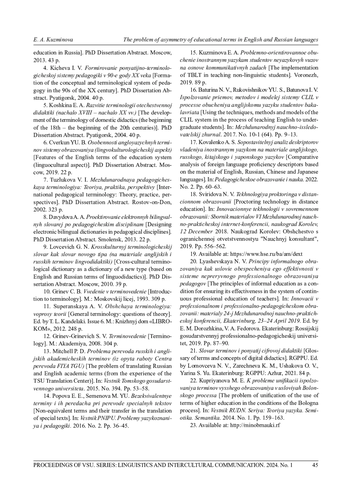 6. Цверкун Ю. Б. Особенности англоязычных терминов системы образования (лингвокультурологический аспект): автореф. дис.. канд. филол. наук. М., 2019. 22 с. EDN: KGLQEE