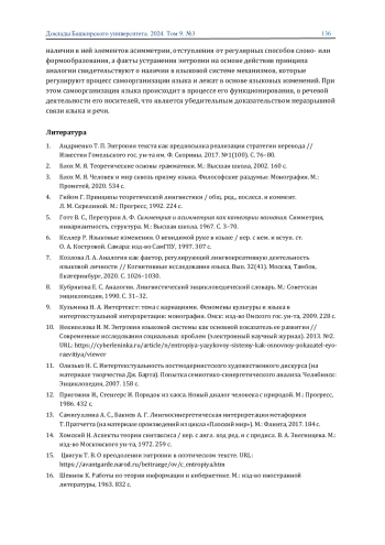 1. Андриенко Т. П. Энтропия текста как предпосылка реализации стратегии перевода // Известия Гомельского гос. ун-та им. Ф. Скорины. 2017. №1(100). С. 76-80. EDN: YFYPLF