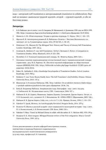 3. Фролов В. И. Автоперевод романа В. В. Набокова “Лолита” // Вестник Московского гос. лингвист. ун-та. Гуманитарные науки. 2016. №10(749). С. 38-49.