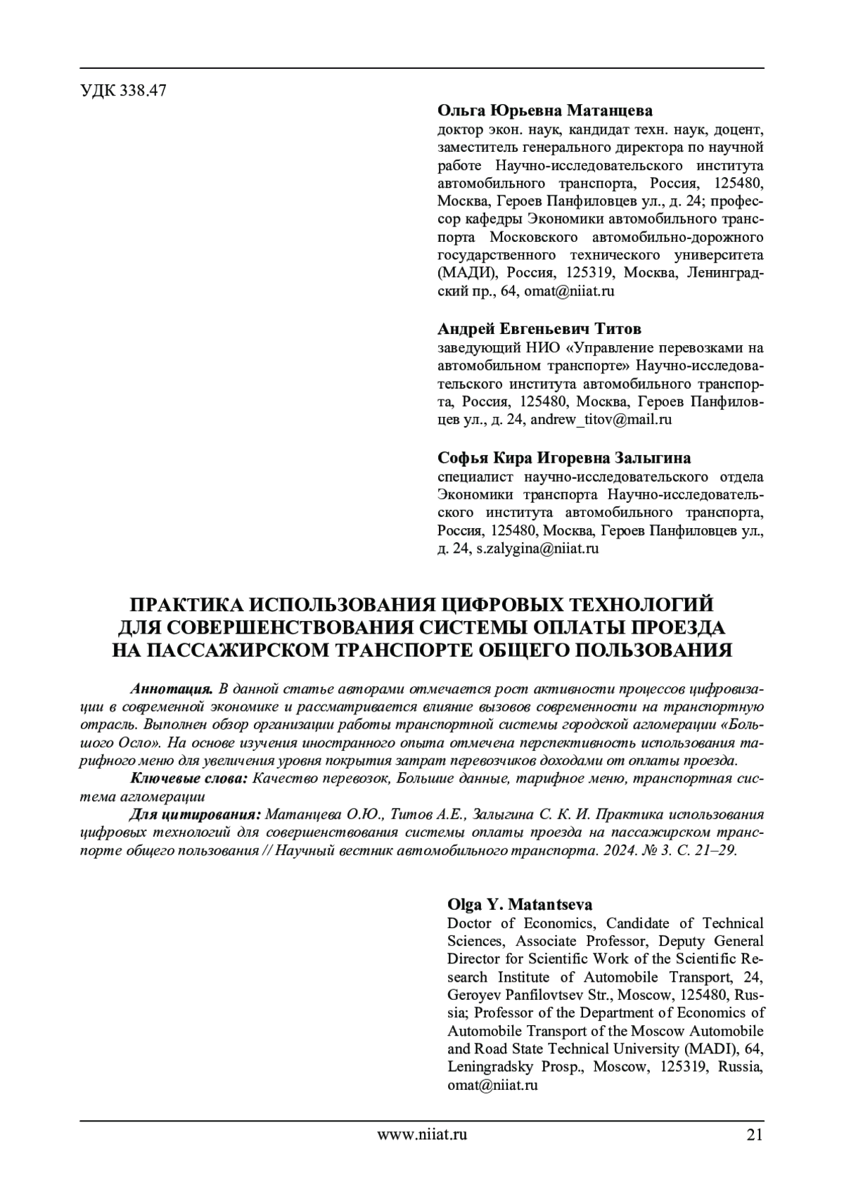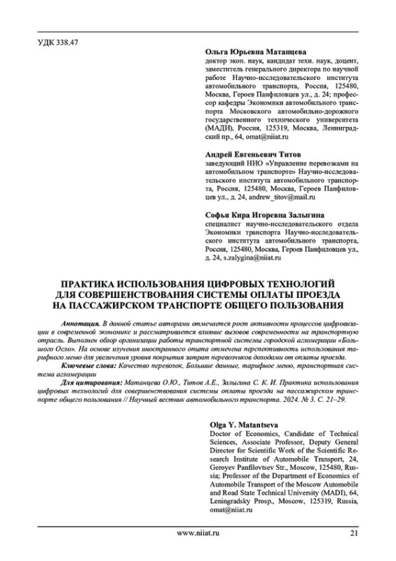 В данной статье авторами отмечается рост активности процессов цифровизации в современной экономике и рассматривается влияние вызовов современности на транспортную отрасль. Выполнен обзор организации работы транспортной системы городской агломерации «Большого Осло». На основе изучения иностранного опыта отмечена перспективность использования тарифного меню для увеличения уровня покрытия затрат перевозчиков доходами от оплаты проезда.
