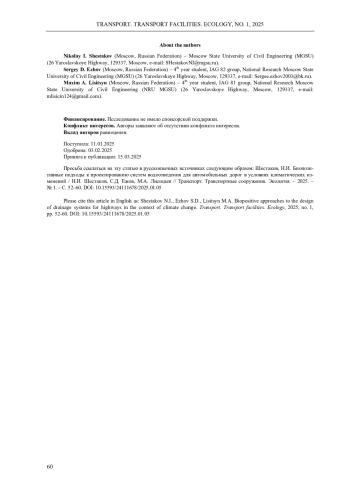 Представлены результаты исследования биопозитивных подходов к проектированию систем водоотведения для автомобильных дорог в условиях изменяющегося климата. Анализ проблемы показывает, что увеличение частоты и интенсивности экстремальных осадков, связанное с глобальными климатическими изменениями, создает дополнительные гидрологические нагрузки на дорожную инфраструктуру, что приводит к повышению риска размывов, подтоплений и разрушений земляного полотна. Для оценки гидрологических параметров использована статистическая модель Гумбеля, позволяющая прогнозировать интенсивность осадков с учетом их вероятностного характера. Проведены расчеты интенсивности осадков и пропускной способности водоотводных систем для различных периодов повторяемости (10, 100 и 1000 лет). Результаты анализа подтвердили необходимость уточнения расчетных методов и увеличения размеров водоотводных устройств для адаптации дорожной инфраструктуры к изменяющимся климатическим условиям. Особое внимание уделено интеграции биопозитивных подходов, направленных на снижение техногенных нагрузок и минимизацию негативного воздействия на природные экосистемы. Предложены рекомендации по использованию экологически устойчивых материалов, улучшению конструктивных решений и разработке комплексных моделей оценки биопозитивности объектов дорожно-строительного комплекса. Полученные результаты способствуют формированию научно обоснованных подходов к проектированию дорожной инфраструктуры, устойчивой к климатическим изменениям, и могут быть применены при разработке нормативных документов, а также в практической инженерной деятельности.