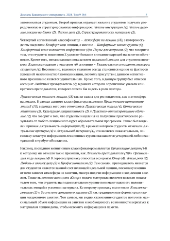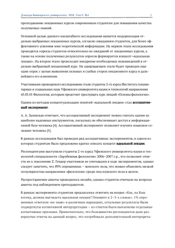 Статья посвящена интерпретации и анализу результатов психолингвистического эксперимента по выявлению ожиданий студентов поколения Z от лекционных курсов. В статье рассматриваются ключевые характеристики поколения Z, а также происходит концептуализация понятия «идеальная лекция» на основе анкетирования студентов. Выявлено, что основным когнитивным классификатором рассматриваемого понятия для студентов является «взаимодействие преподавателя со студентами» как эффективный способ восприятия информации.
