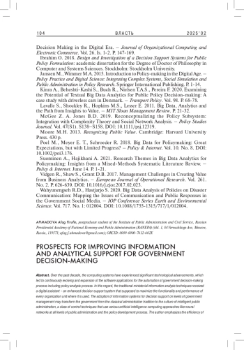 11. Höchtl J. Parycek P., Schöllhammer R. 2016. Big Data in the Policy Cycle: Policy Decision Making in the Digital Era. - Journal of Organizational Computing and Electronic Commerce. Vol. 26. Is. 1-2. P. 147-169.