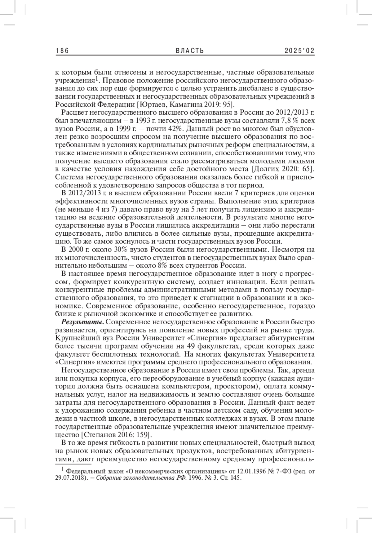 4. Степанов В.И. 2016. Влияние негосударственного сектора высшего образования на повышение культурного и образовательного уровня граждан России. - Современные наукоемкие технологии. № 2 (ч. 1). С. 157-161. EDN: VMGLWR