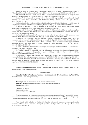 17. Markl E., Lackner M. Devulcanization Technologies for Recycling of Tire-Derived Rubber: A Review // Materials. - 2020. - Vol. 13(5). - P. 1246. DOI: 10.3390/ma13051246 EDN: VUMVSV