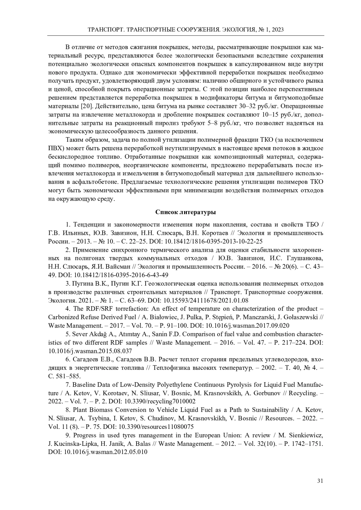 20. Перспективные направления получения битумоподобных материалов на основе отходов синтетических полимеров / В.Б. Босник, Я.И. Вайсман, А.А. Кетов, М.П. Красновских, Л.В. Рудакова // Экология и промышленность России. - 2020. - Т. 24, № 5. - С. 34-39. EDN: HCJIDR